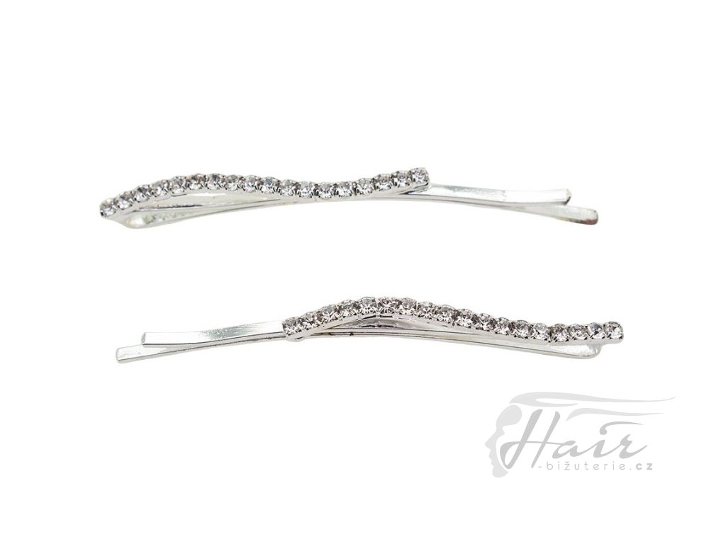 Kovová sponka s kamínky - vlnka, 2 ks